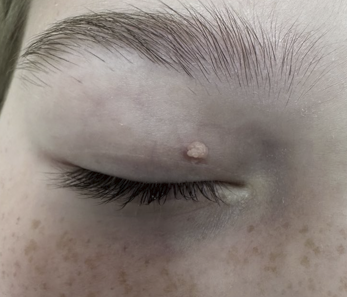 - Папиллома расположена на лице,шее, в зоне века